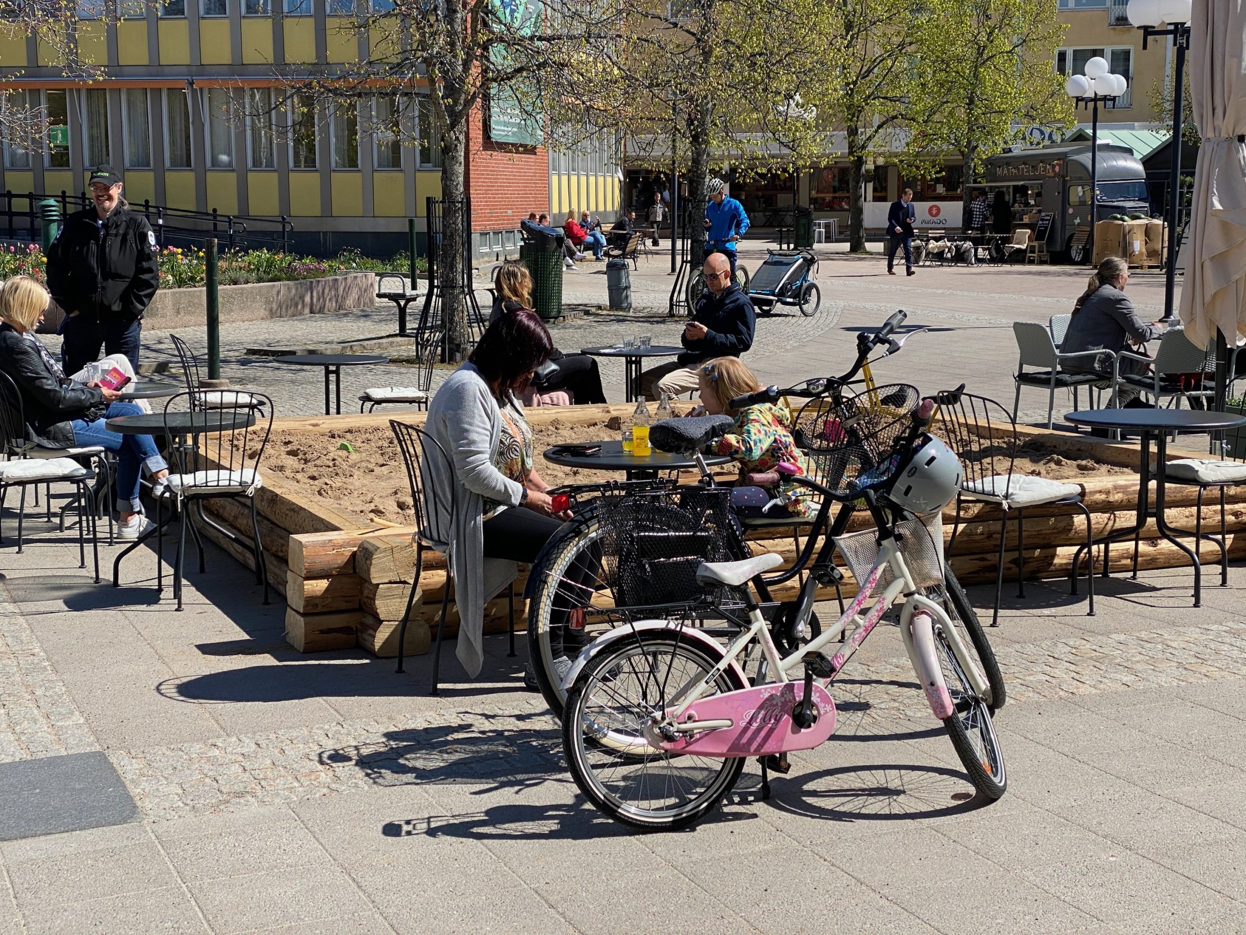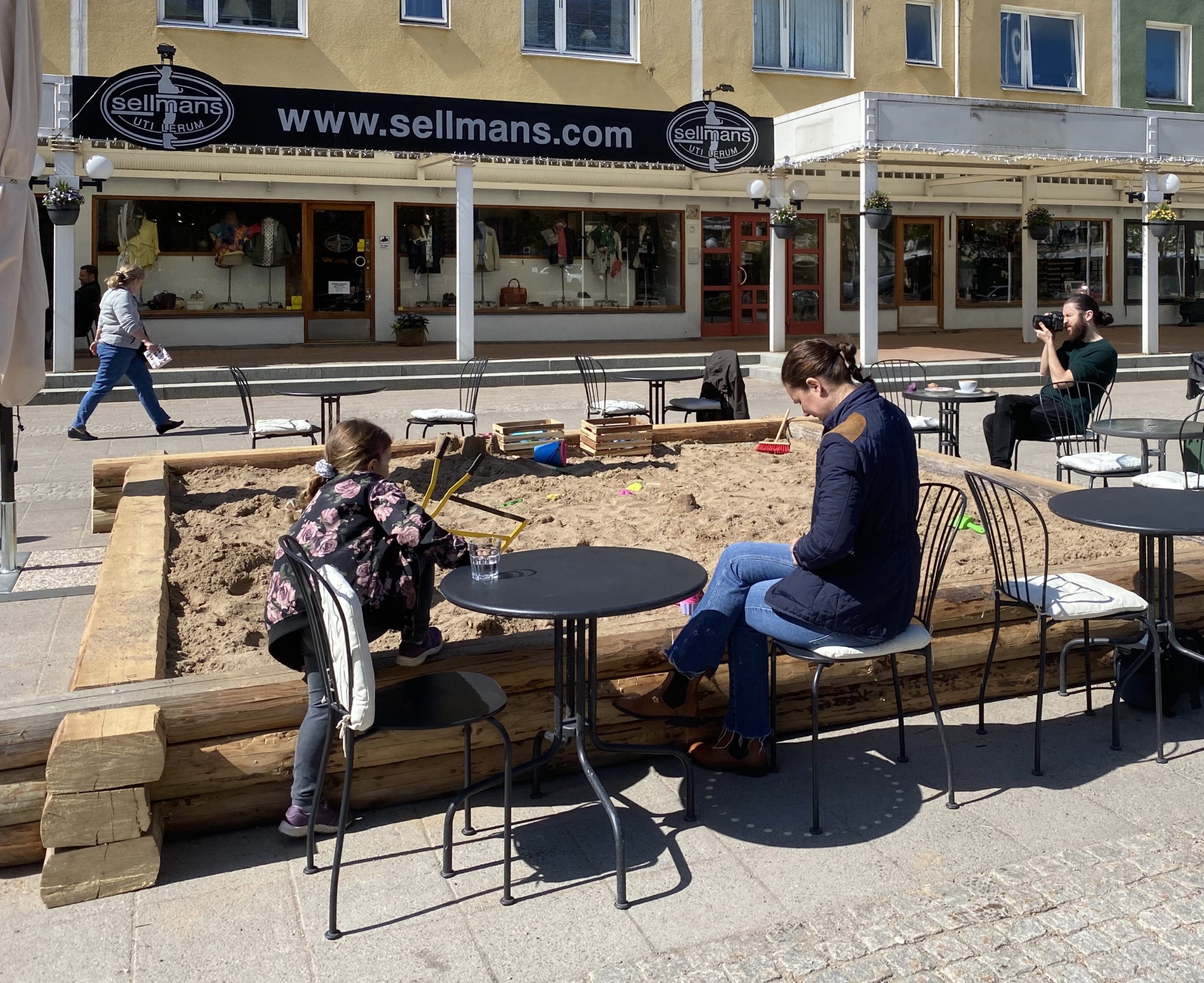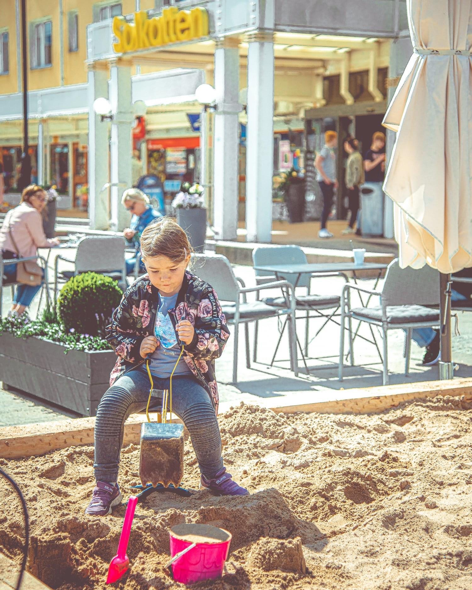 Solkatten och Bagges Torg är på väg att bli ett favoritställe för barnen. I går kom sandlådan på plats och den kommer snart att kompletteras med en liten rutschkana.