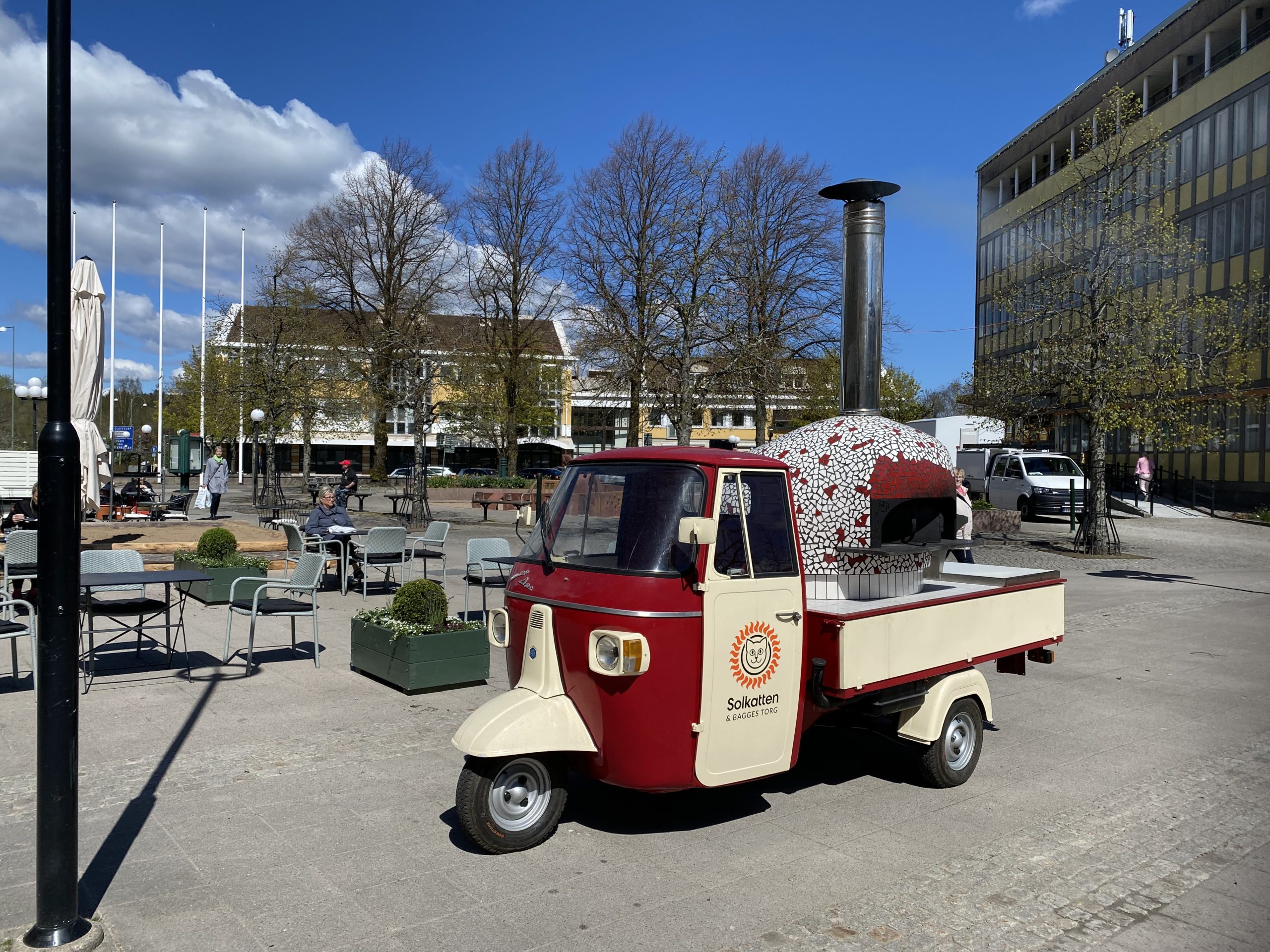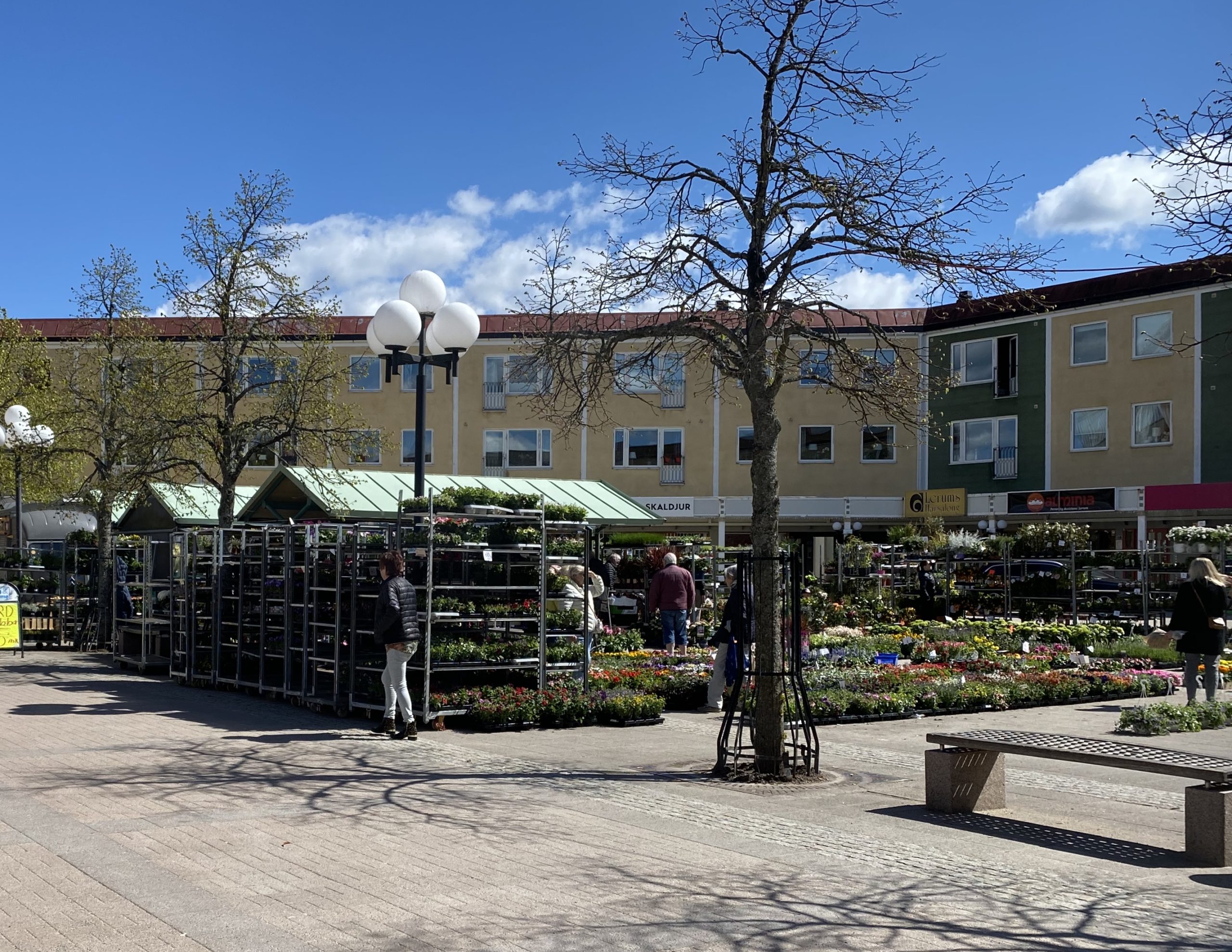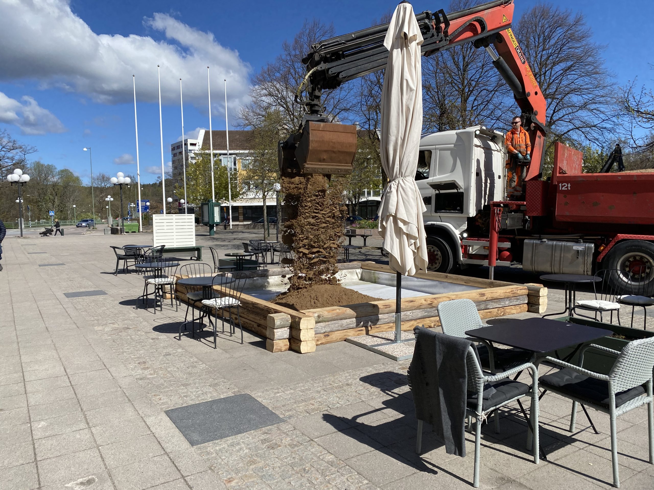 Det händer mycket på Bagges Torg i dessa dagar. Vattenläcka vid kommunhuset har resulterat i ett stort hål vid entrén. Grönsaker och blommor lockar kunder till Alis torghandel. Pizzabilen och foodtrucken fixar mat till alla som vill hålla sig utomhus. Och sist, men inte minst, har systrarna Fasths uteservering begåvats med en stor sandlåda där barnen kan leka medan föräldrarna fikar.