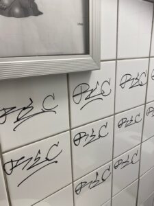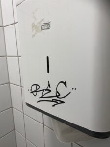 Lerum/Notis Klottrare på Solkatten december 13, 2020 Under luciafirandet var det tråkigt nog en klottrare som satte sin signatur på en av toaletterna. Solkatten och Bagges Torg har varit befriat från klottrare och vi vill alla att så ska förbli. Den som känner igen signaturen. kan kontakta polisen. Lämna ett svar Avbryt svarDin e-postadress kommer inte att publiceras. Spara mitt namn, min e-postadress och webbplats i denna webbläsare till nästa gång jag skriver en kommentar. Δ
