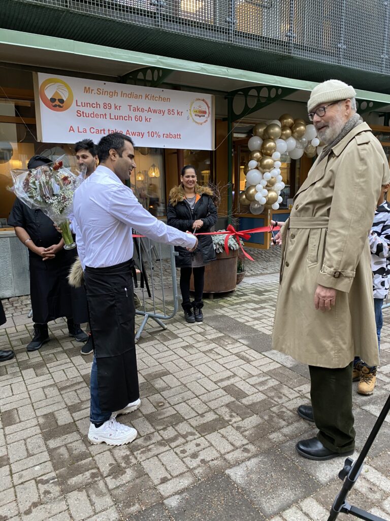 Mr Singh själv klippte bandet prick kl 11 och tog sedan emot blommor av Christer Harling, mannen bakom Bagges Torgs uppvaknande.
